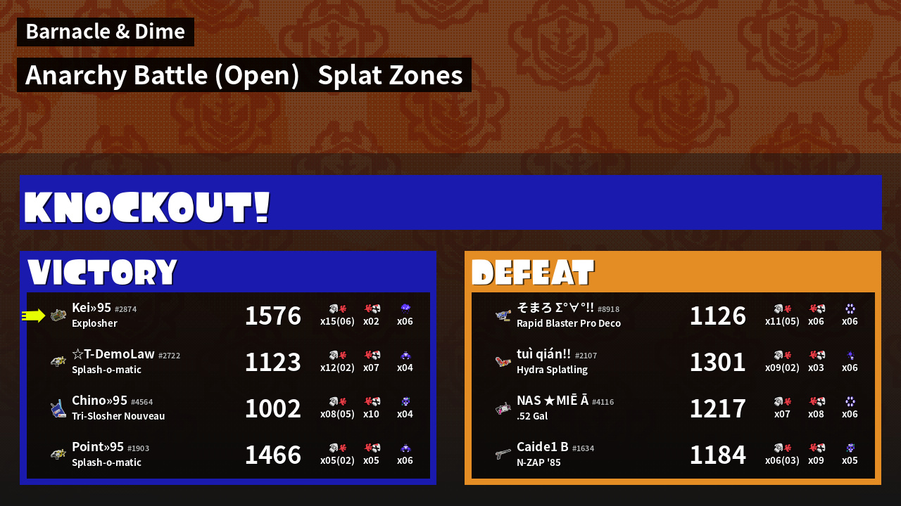| Mode | Splat Zones - Anarchy Battle (Open) | ||