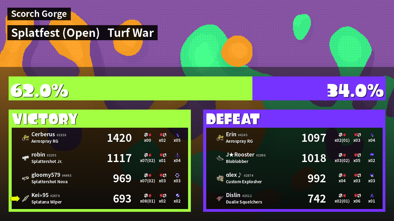 | Medals | #1 Overall Splatter #1 Popular Target #1 Enemy Splatter | ||