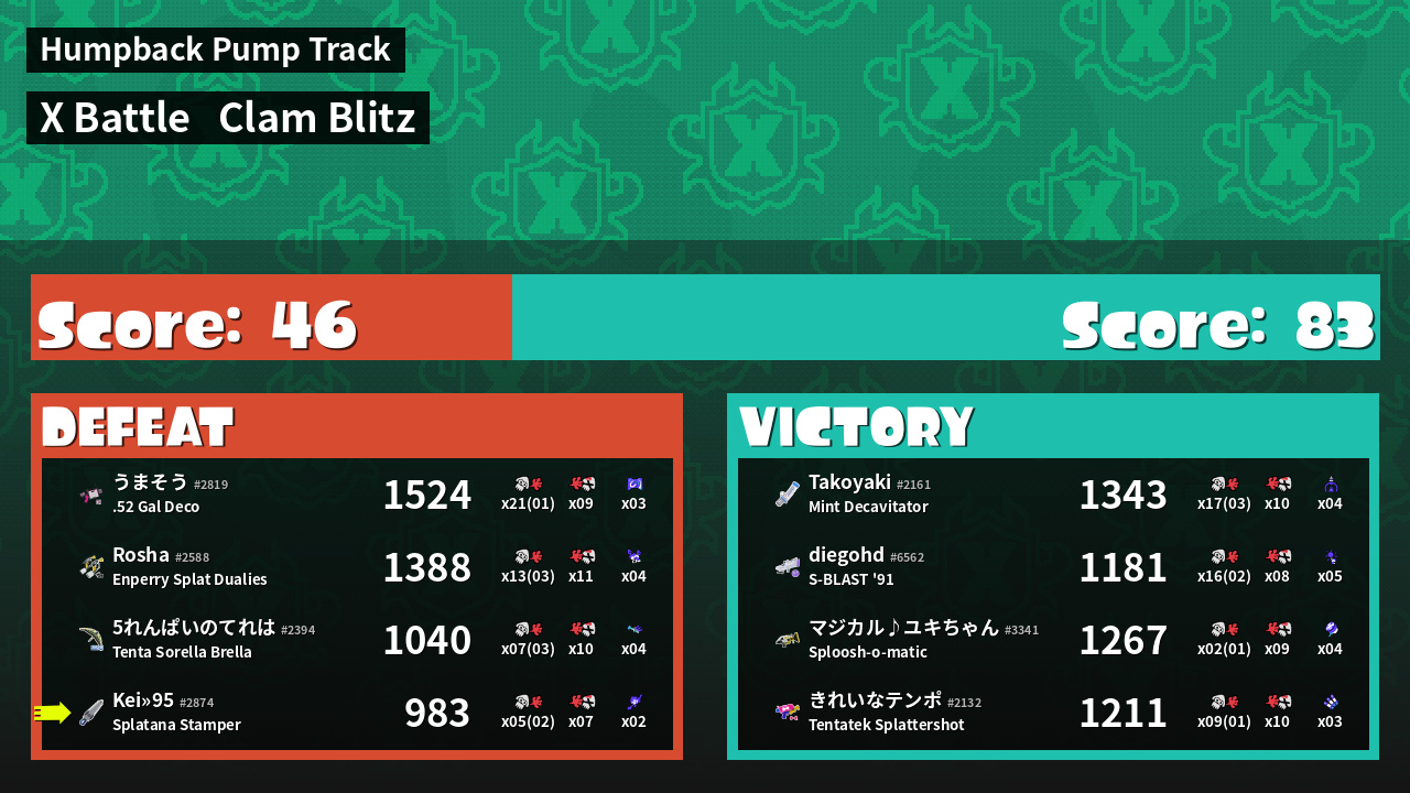 | Mode | Clam Blitz - X Battle | ||