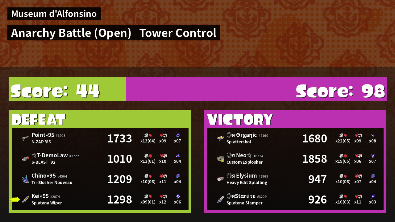 | Mode | Tower Control - Anarchy Battle (Open) | ||