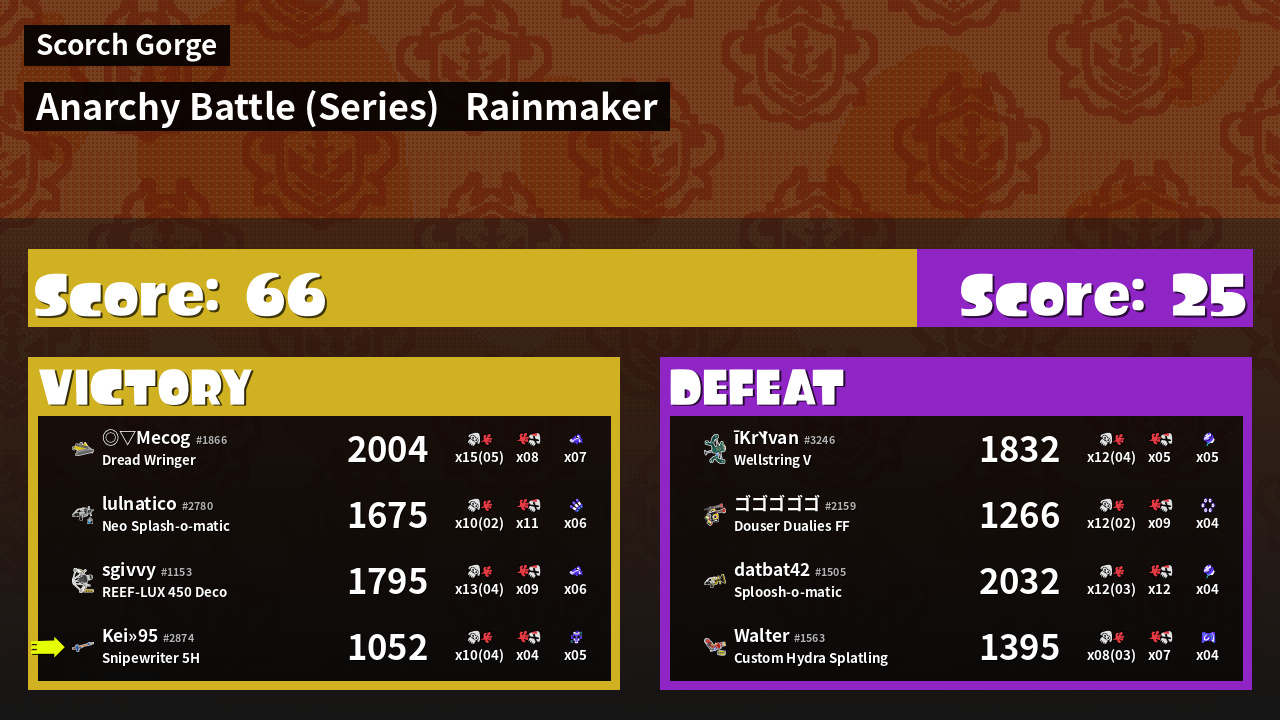 | Medals | #1 Super Jump Spot #1 Rainmaker Stopper #1 Ink Consumer | ||