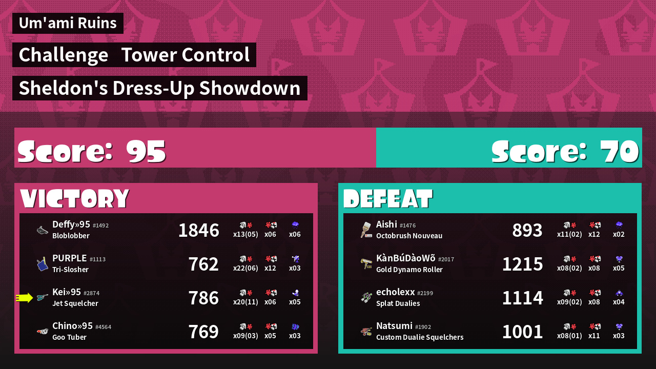 | Medals | #1 Popular Target #1 Splat Assister #1 Checkpoint Breaker | ||