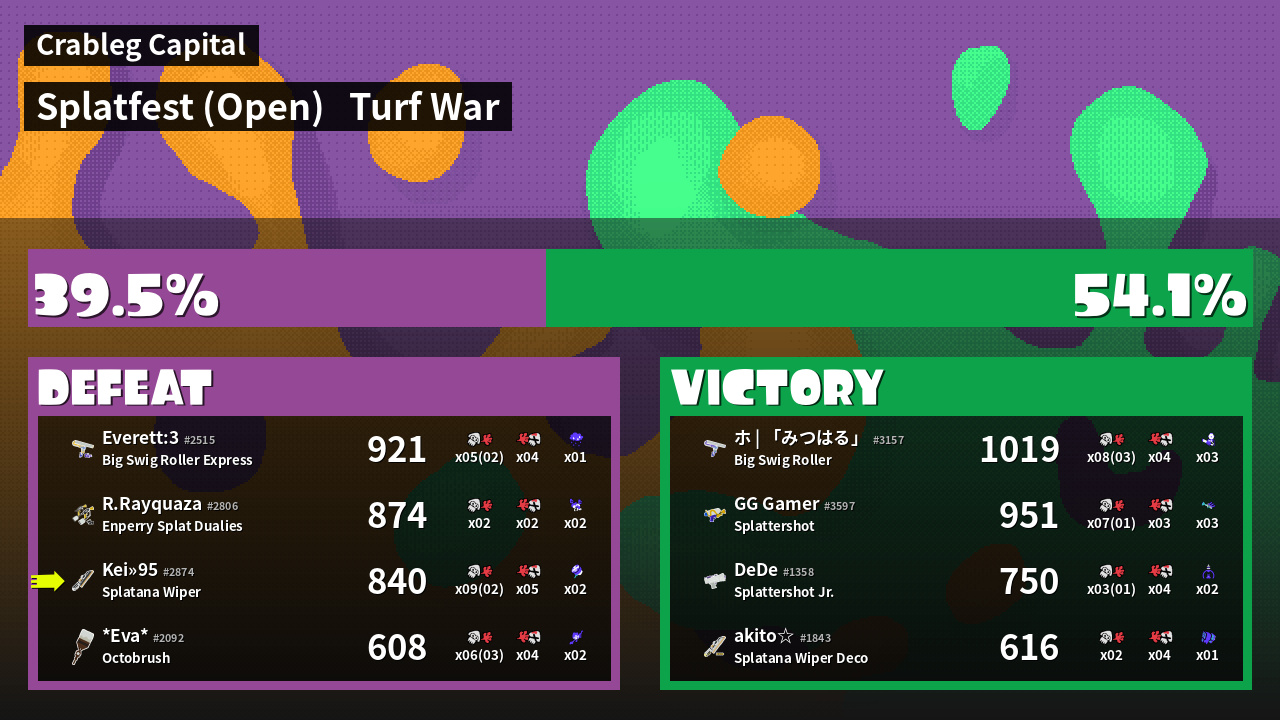 | Medals | #1 Overall Splatter #1 Popular Target #1 Enemy-Base Inker | ||