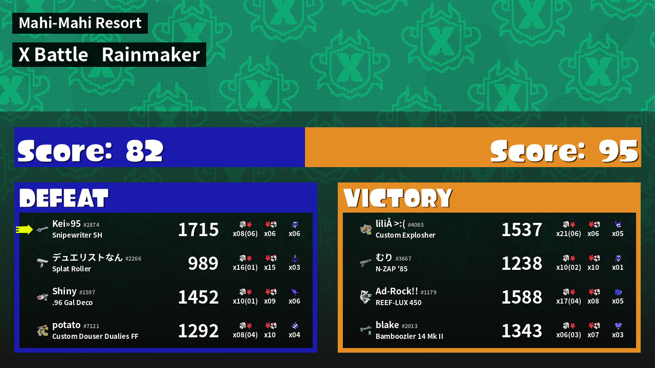 | Mode | Rainmaker - X Battle | ||