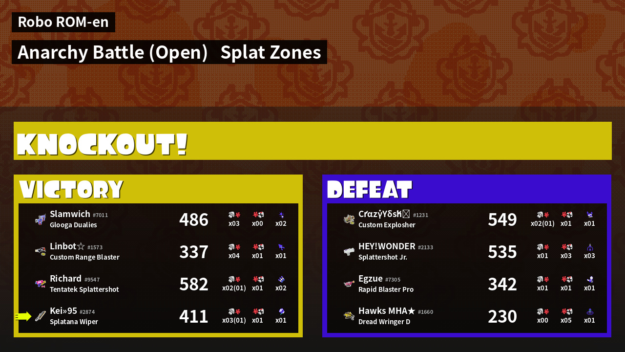 | Mode | Splat Zones - Anarchy Battle (Open) | ||
