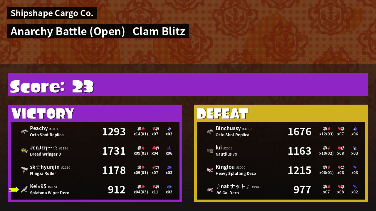 | Mode | Clam Blitz - Anarchy Battle (Open) | ||