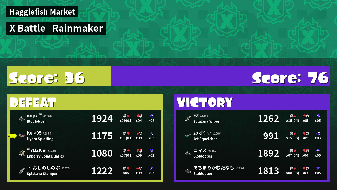 | Mode | Rainmaker - X Battle | ||