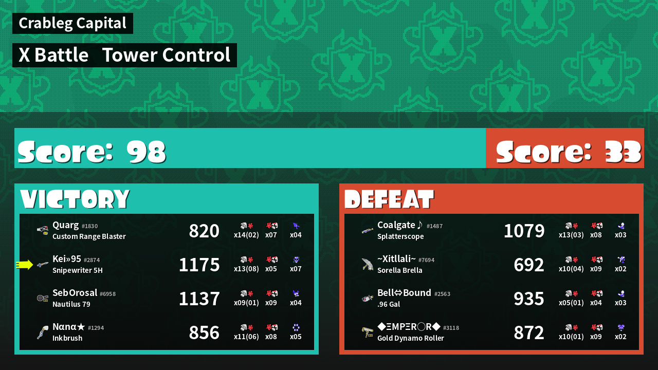 | Medals | #1 Turf Inker #1 Splat Assister #1 Tacticooler User | ||