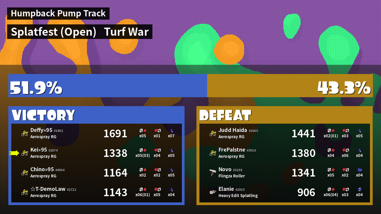 | Medals | #1 Splat Assister #1 Base Defender #2 Overall Splatter | ||