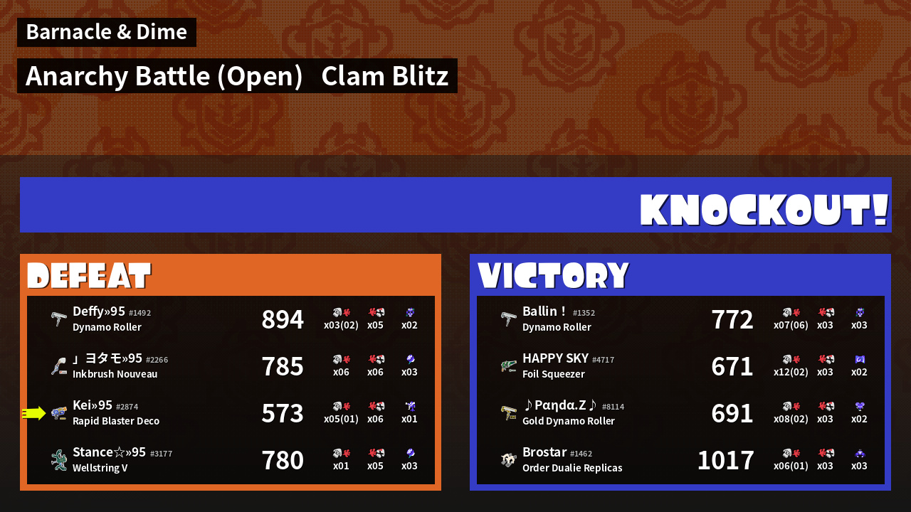 | Mode | Clam Blitz - Anarchy Battle (Open) | ||