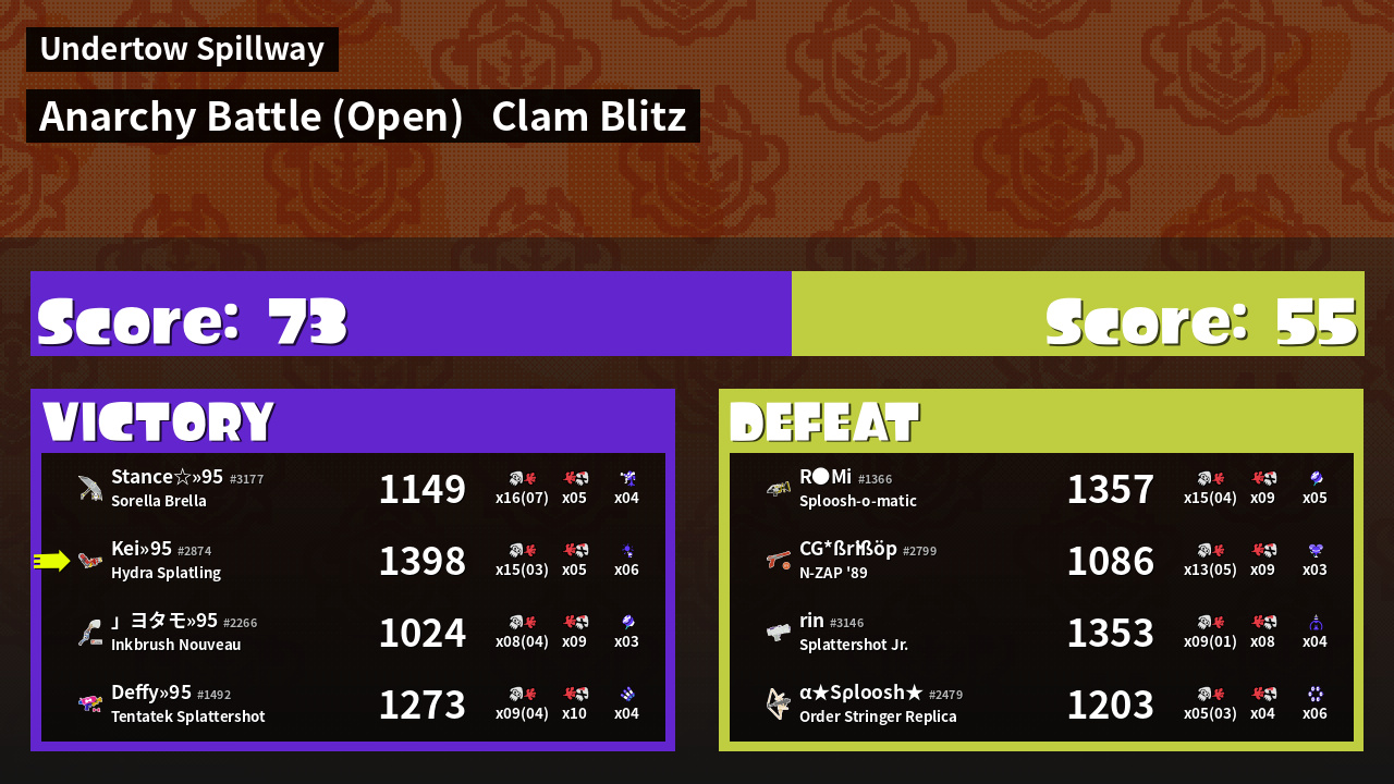 | Mode | Clam Blitz - Anarchy Battle (Open) | ||