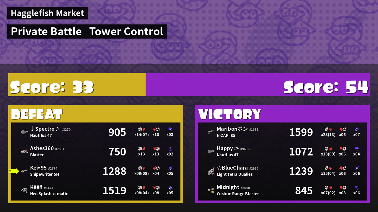 | Medals | #1 Super Jump Spot #1 Splat Assister #1 Tower Stopper | ||