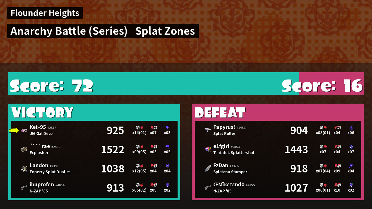 | Mode | Splat Zones - Anarchy Battle (Series) | ||
