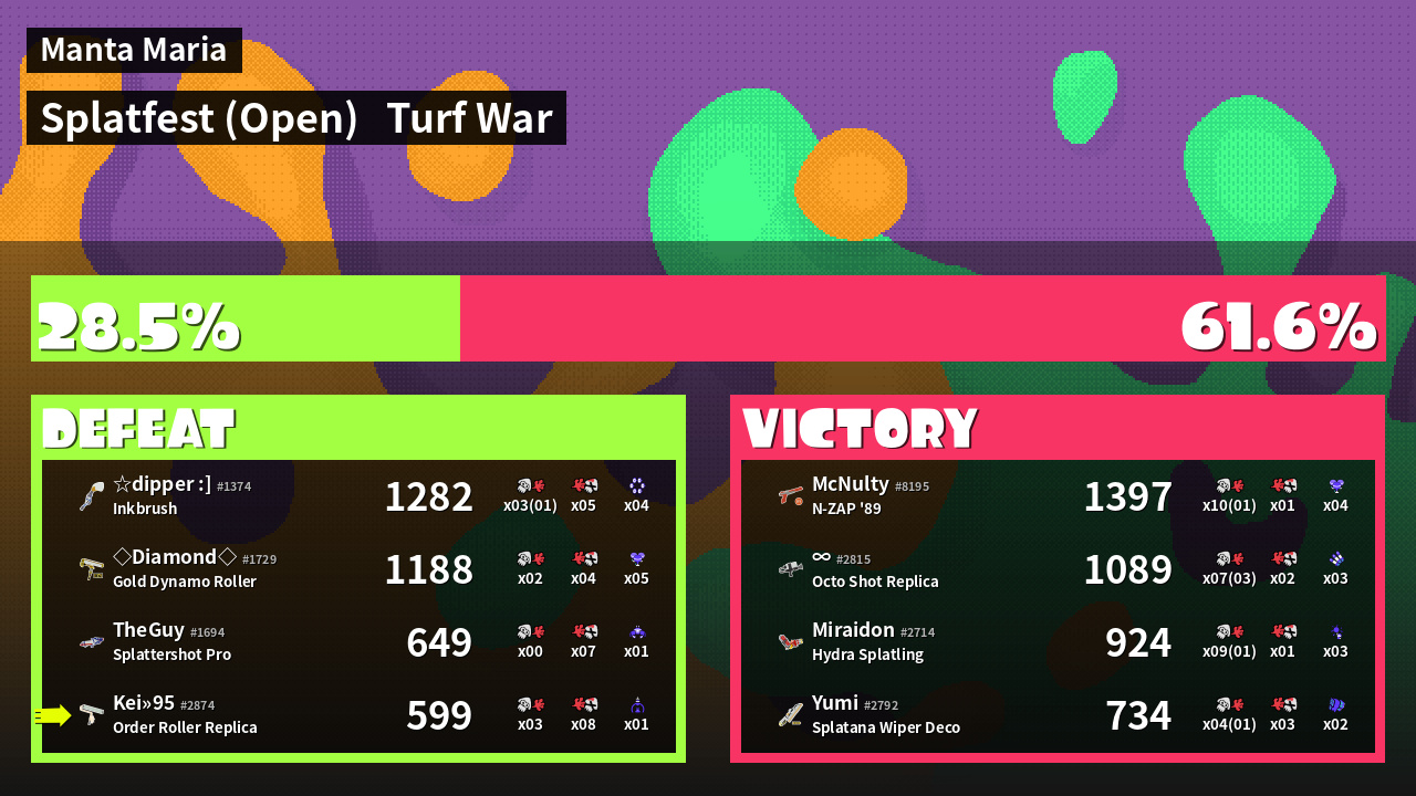 | Medals | #1 Overall Splatter #1 Enemy Splatter First Splat! | ||