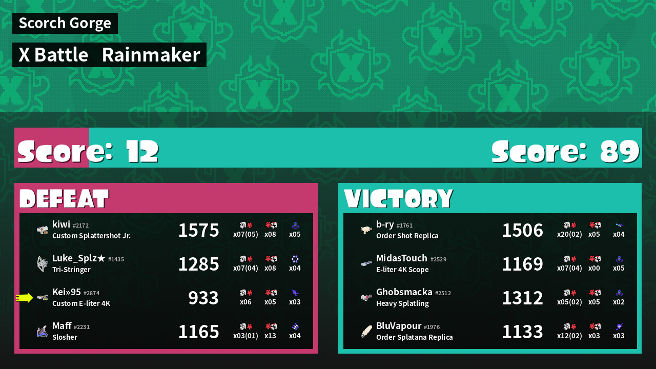| Medals | #1 Super Jump Spot #1 Enemy Splatter #1 Rainmaker Stopper | ||