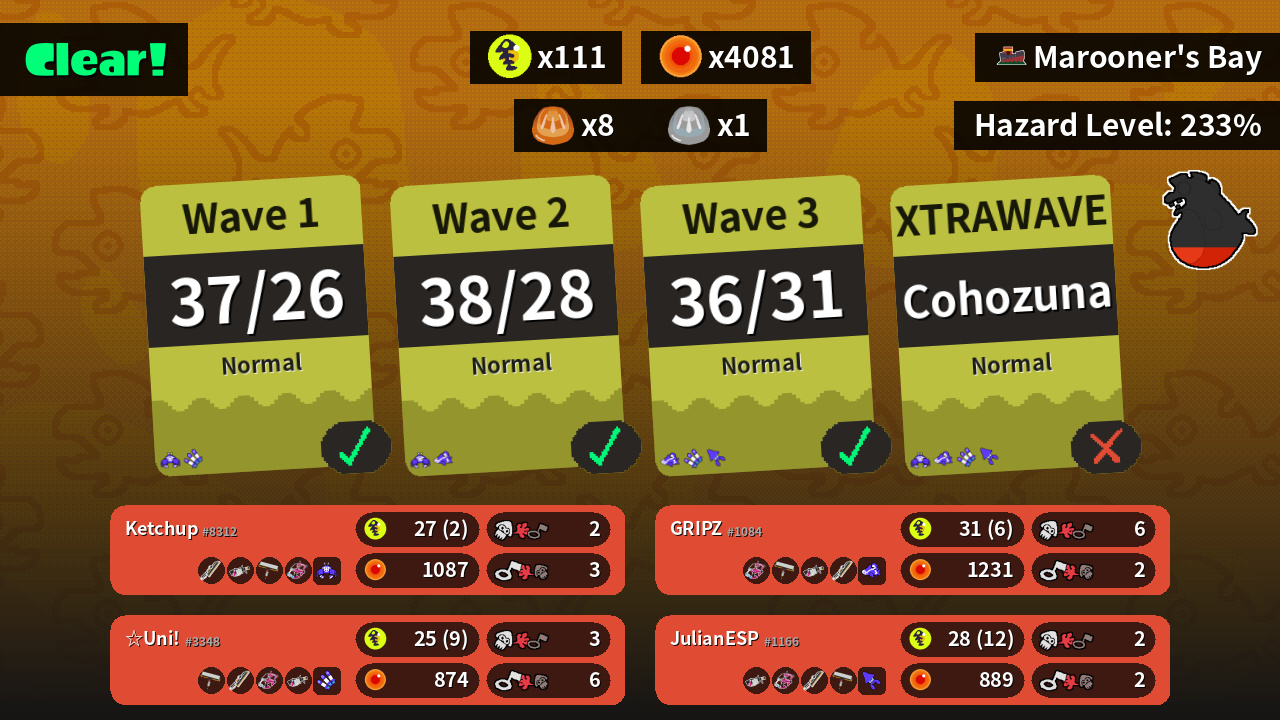 | Boss Salmonid | 19 | 20 | 16 | 19 |