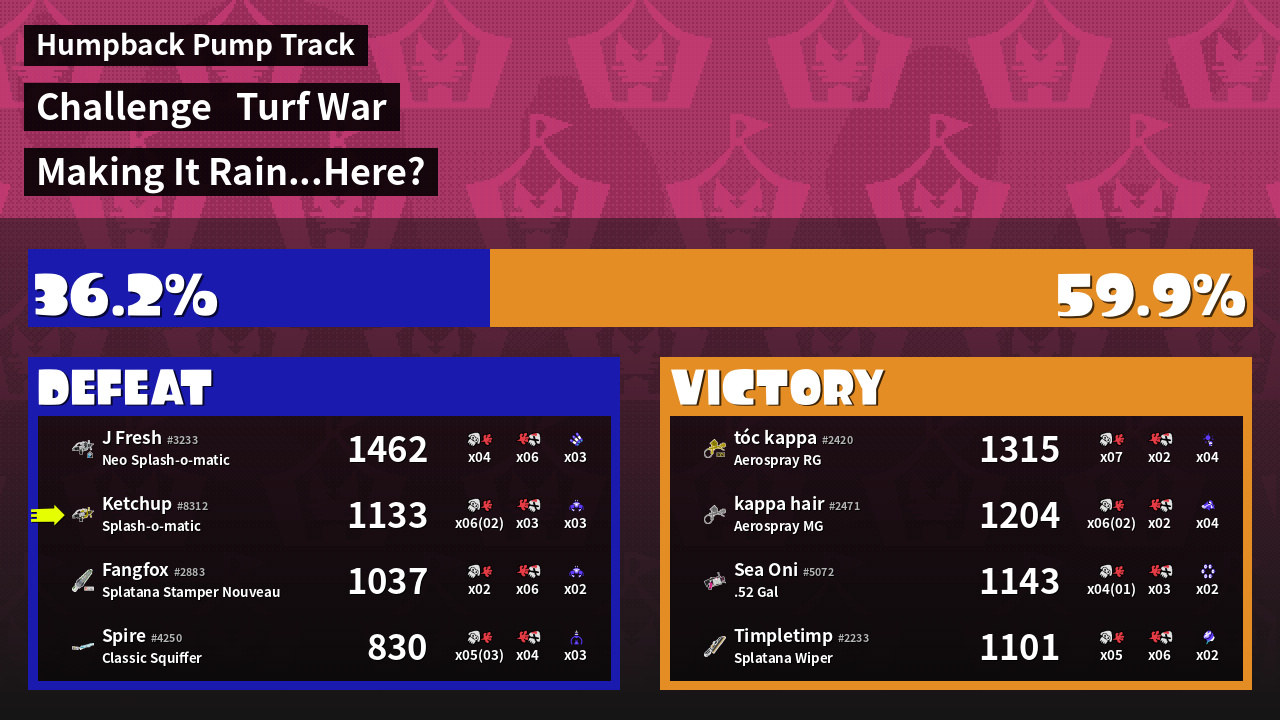 | Medals | #1 Overall Splatter #1 Super Jump Spot #1 Enemy Splatter | ||