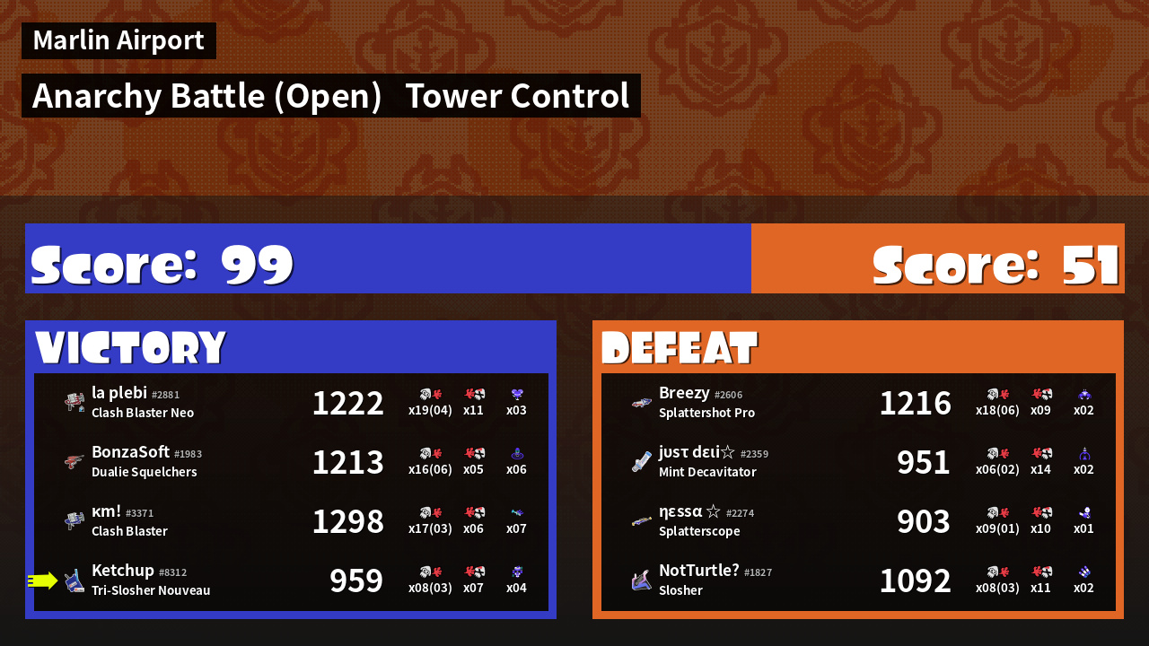 | Mode | Tower Control - Anarchy Battle (Open) | ||