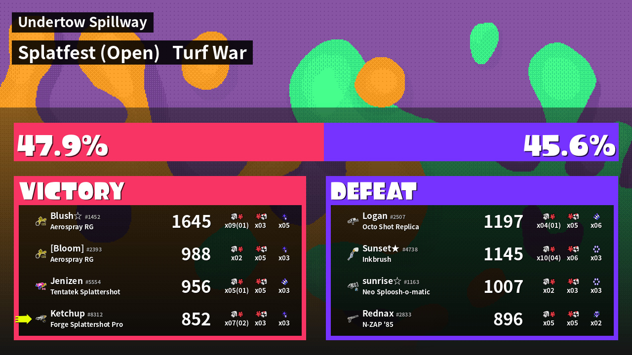 | Medals | #1 Splat Assister #1 Damage Taker #2 Overall Splatter | ||