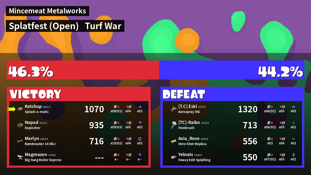 | Medals | #1 Turf Inker #1 Home-Base Inker #1 Enemy-Base Inker | ||
