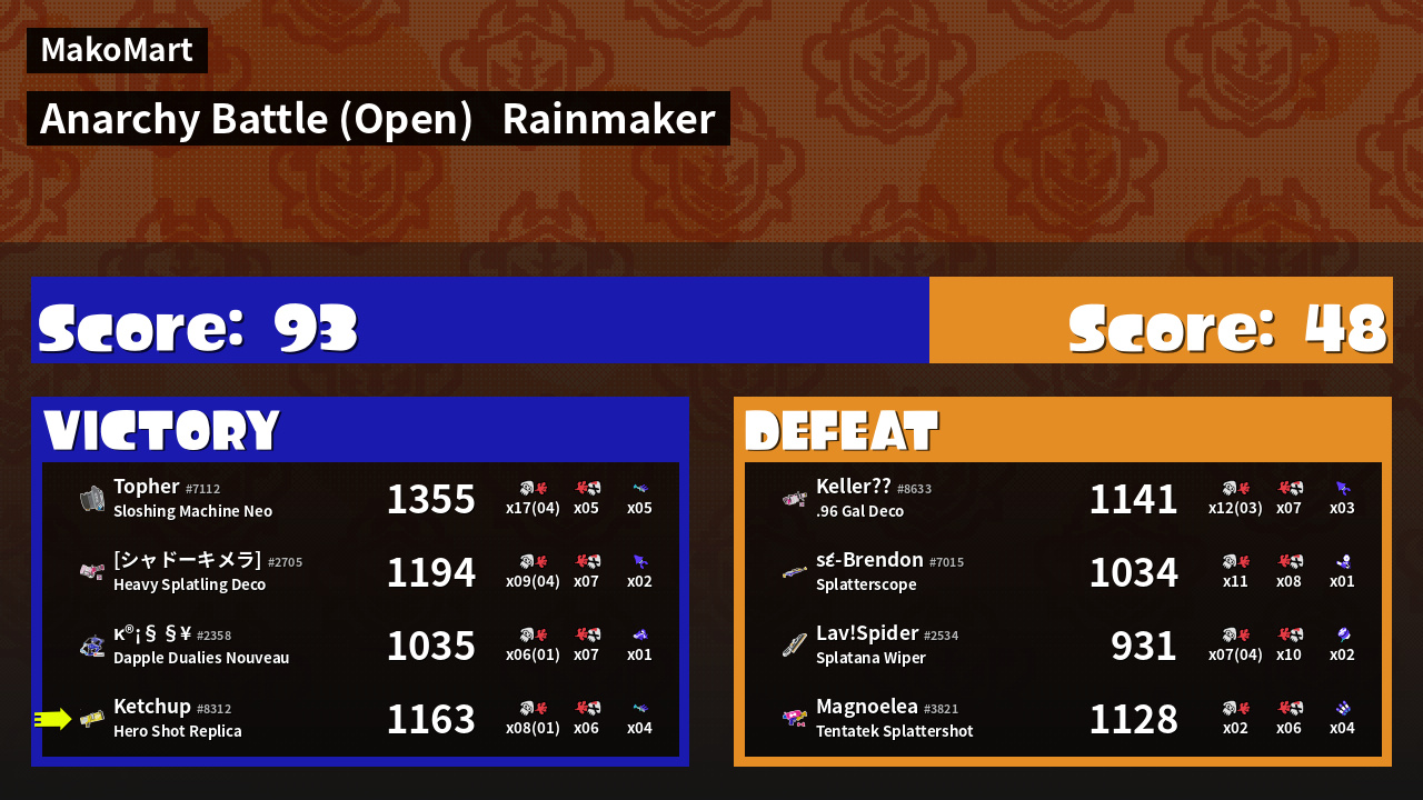 | Mode | Rainmaker - Anarchy Battle (Open) | ||