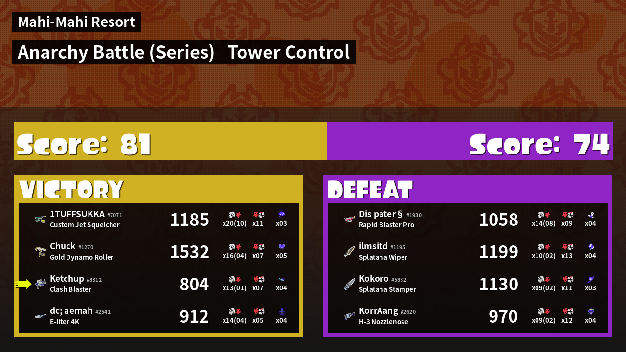 | Mode | Tower Control - Anarchy Battle (Series) | ||