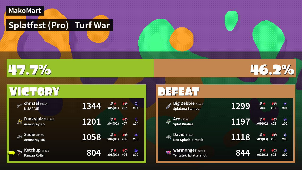 | Medals | #1 Overall Splatter #1 Popular Target #1 Enemy Splatter | ||
