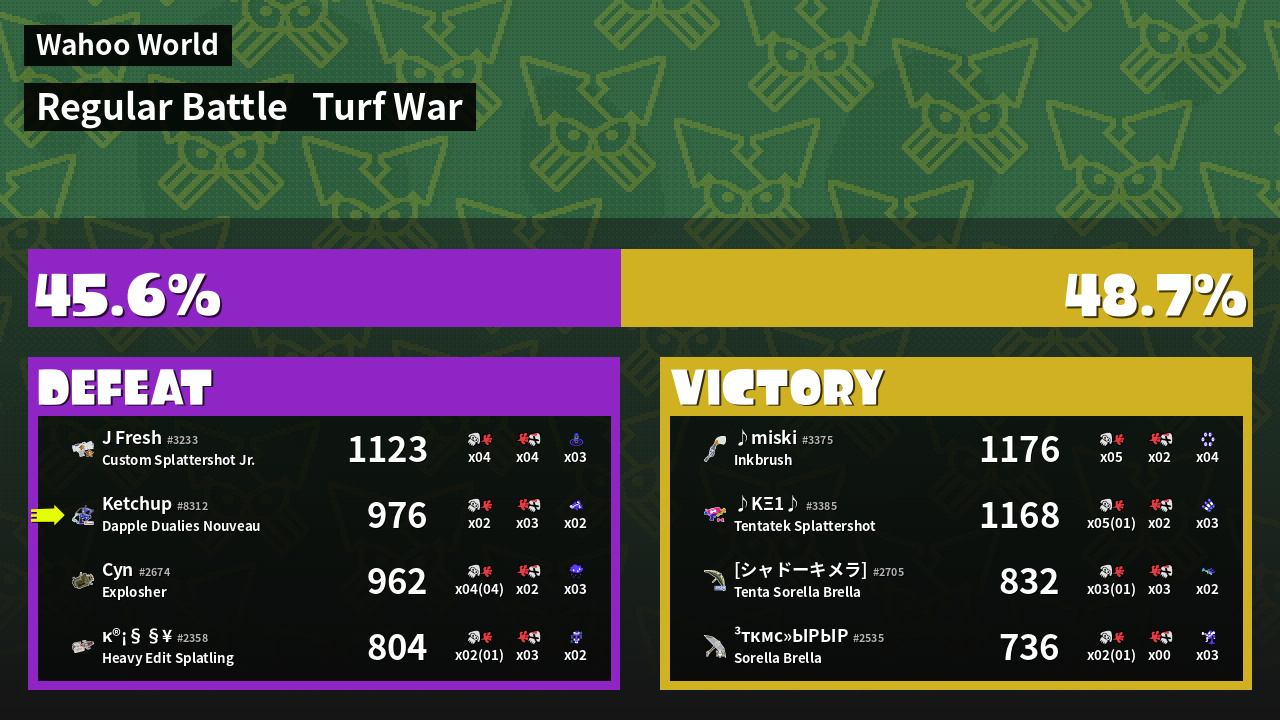 | Mode | Turf War - Regular Battle | ||