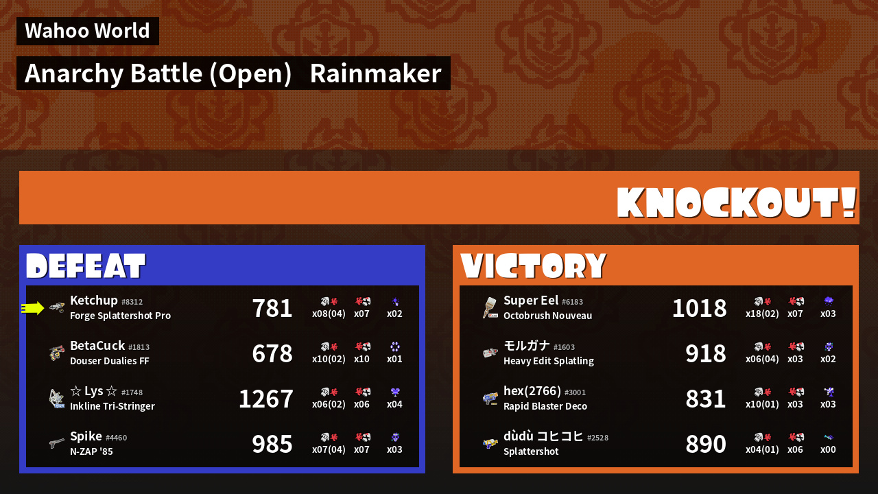 | Mode | Rainmaker - Anarchy Battle (Open) | ||