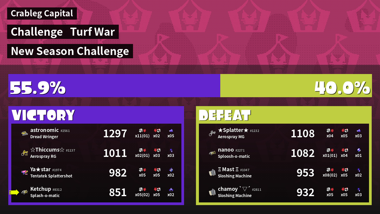 | Medals | #1 Home-Base Inker #1 Splat Assister #1 Base Defender | ||