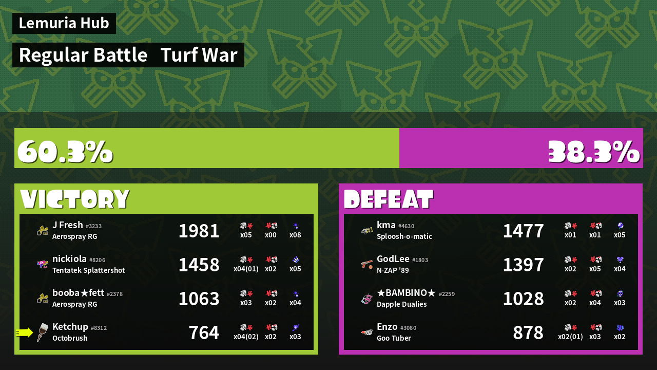 | Medals | #1 Splat Assister #1 Ground Traveler #2 Overall Splatter | ||