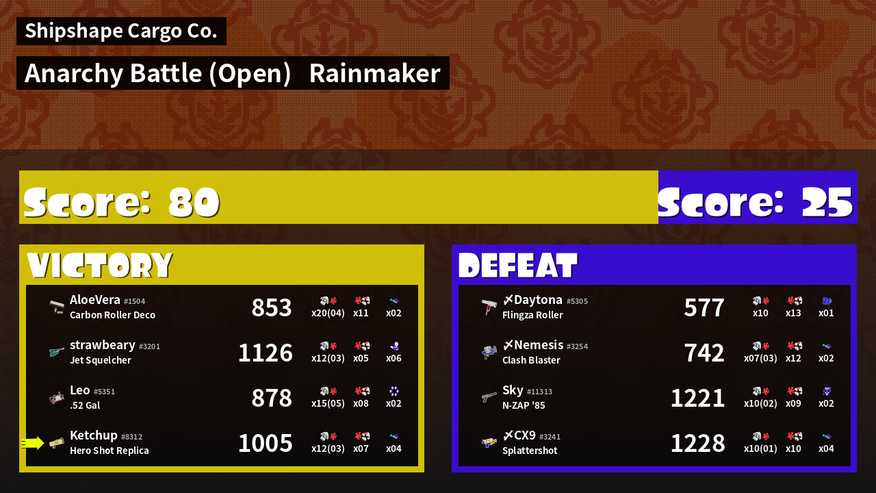 | Mode | Rainmaker - Anarchy Battle (Open) | ||