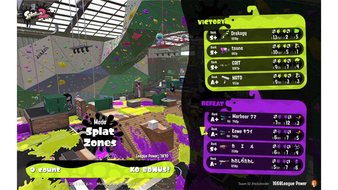 | Mode | Splat Zones - League Battle (Twin) | ||||||||||||||||||||||||||||