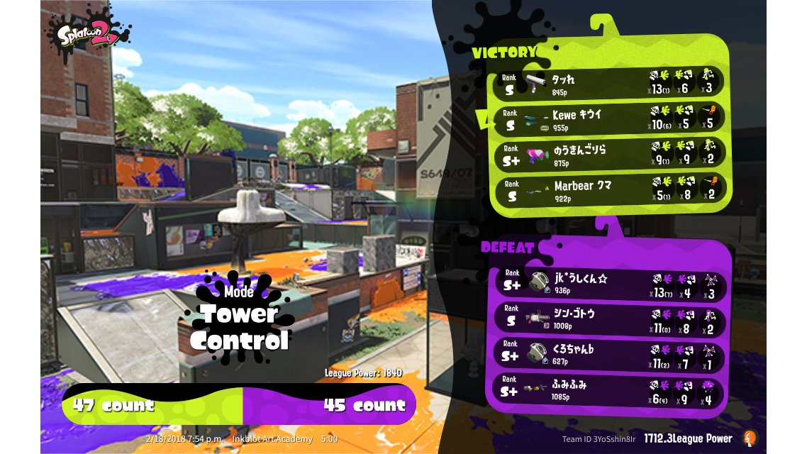 | Mode | Tower Control - League Battle (Twin) | ||||||||||||||||||||||||||||||||||