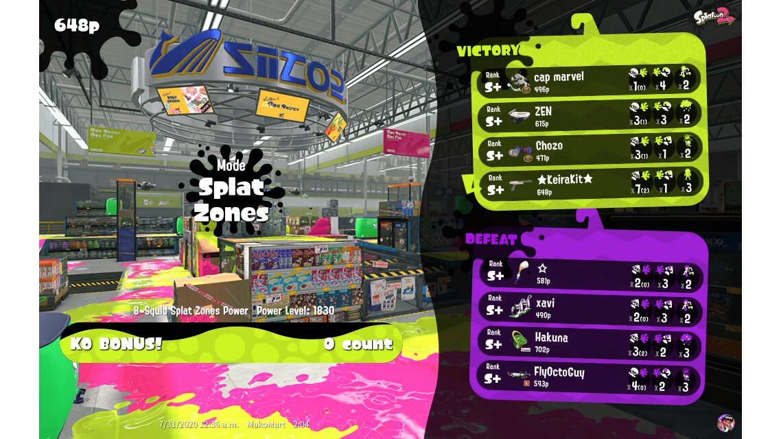 | Mode | Splat Zones - Ranked Battle | ||||||||||||||||