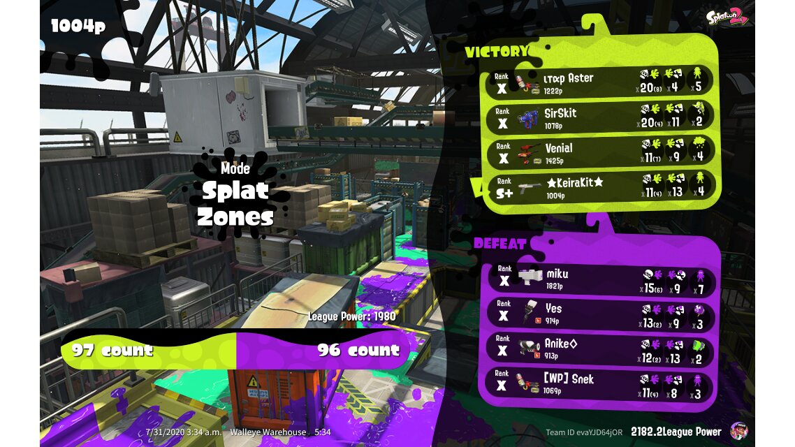 | Mode | Splat Zones - League Battle (Quad) | ||||||||||||||||