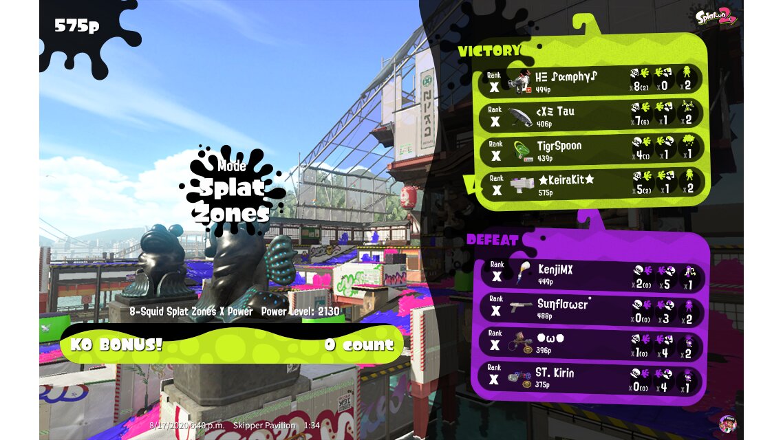 | Mode | Splat Zones - Ranked Battle | ||||||||||||||||||||||||||||||||||||||||