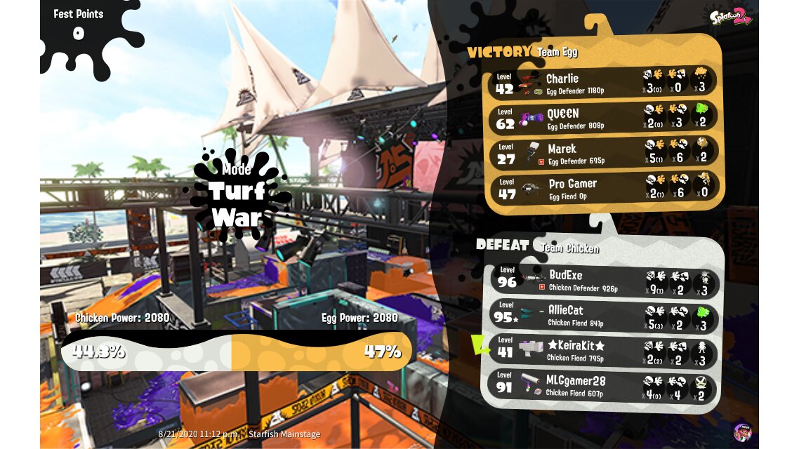 | Mode | Turf War - Splatfest (Pro) | |||||||||||||||||||||||||||||||