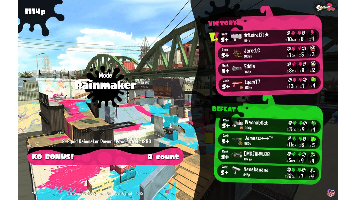 | Name | Weapon | Level | Rank | Inked | k+a/sp | k/d |