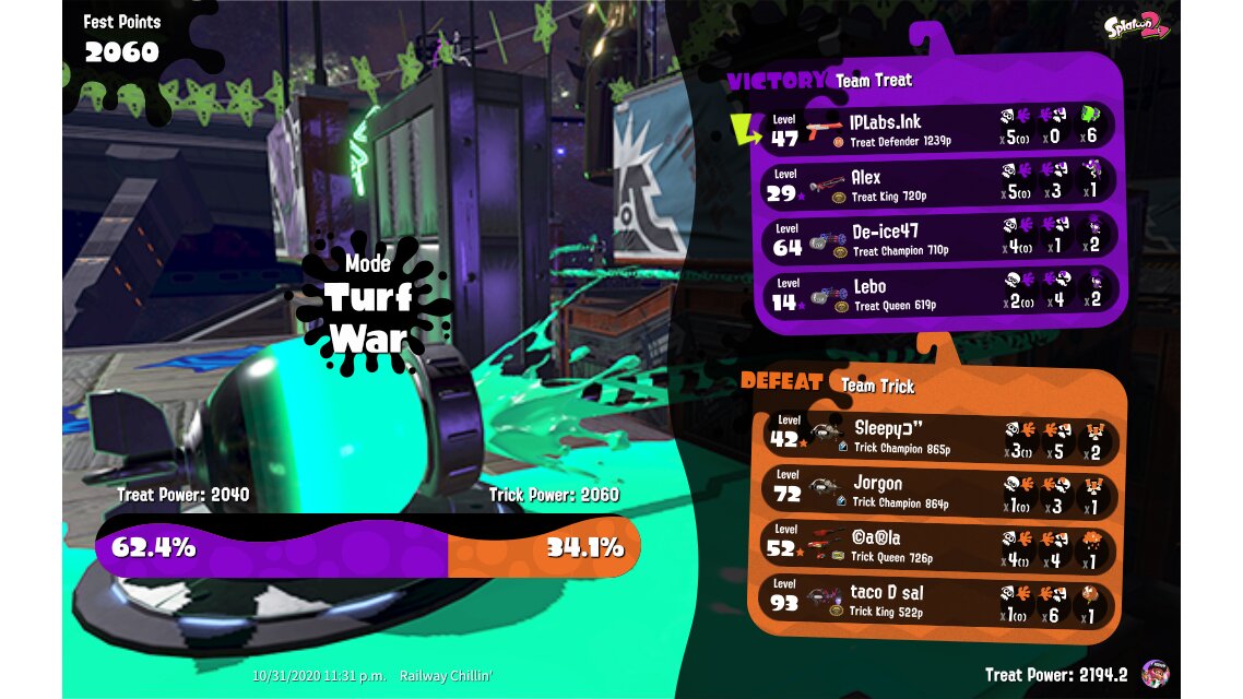 | Splatfest Title | Treat Defender 280 → Treat Defender 370 | |||||||||||||||||||||||||||||||||||||