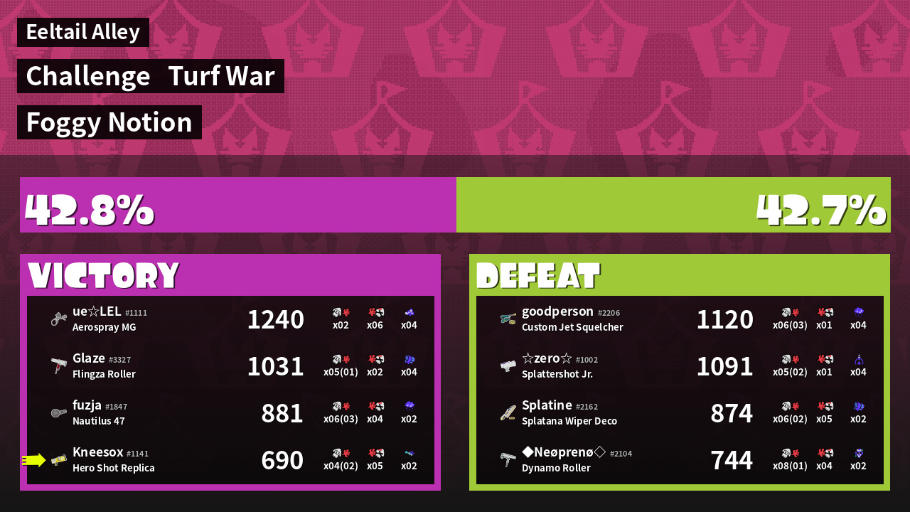 | Mode | Turf War - Challenge | ||