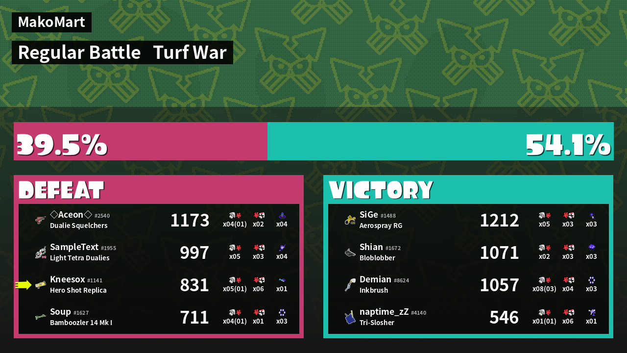 | Medals | #1 Overall Splatter #1 Popular Target #1 Splat Assister | ||