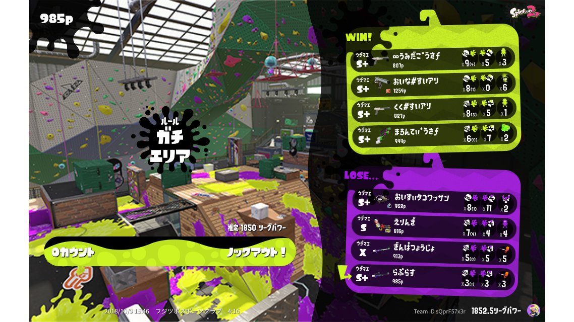 | Mode | Splat Zones - League Battle (Quad) | |||||||||||||||||||||||||||||||||||||