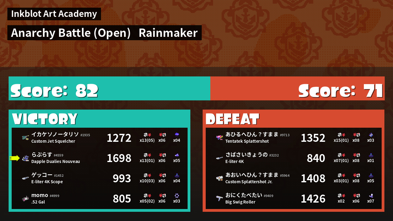 | Mode | Rainmaker - Anarchy Battle (Open) | ||