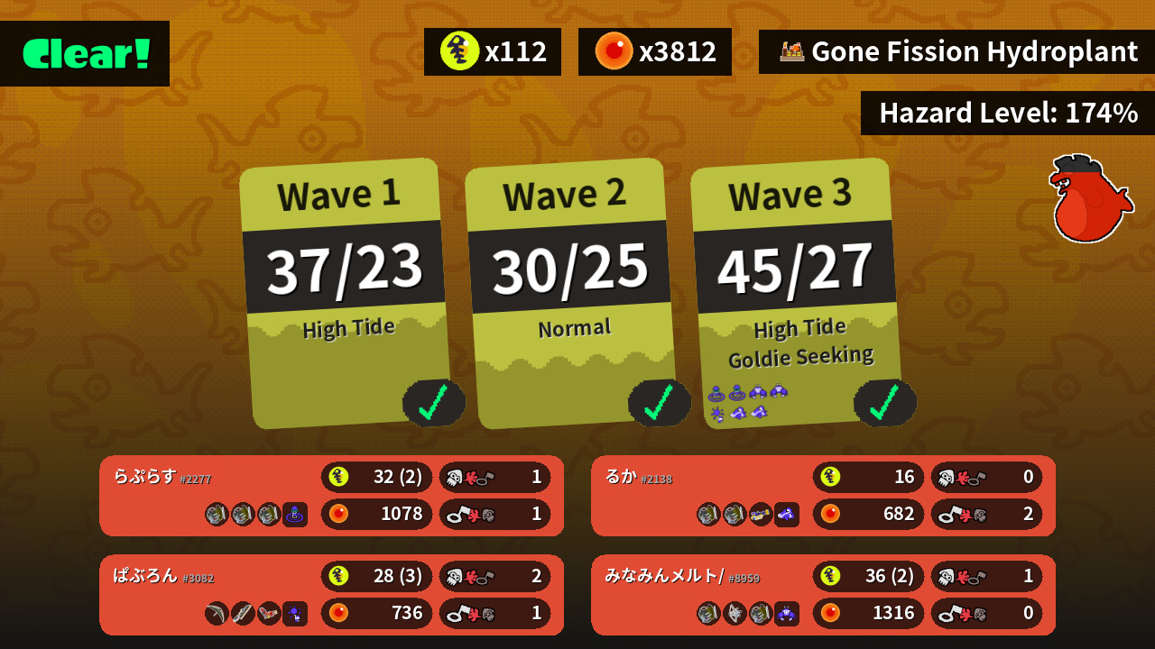 | Weapons | Grizzco Slosher Grizzco Slosher Grizzco Slosher | Grizzco Slosher Tri-Stringer Grizzco Slosher | Tenta Brella Splatana Wiper Hydra Splatling | Grizzco Slosher Grizzco Slosher Mini Splatling |