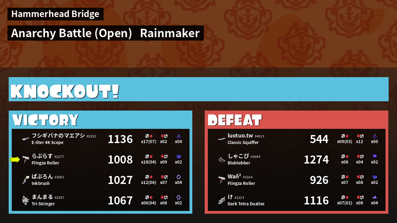 Name | Weapon | Inked | ![]() |