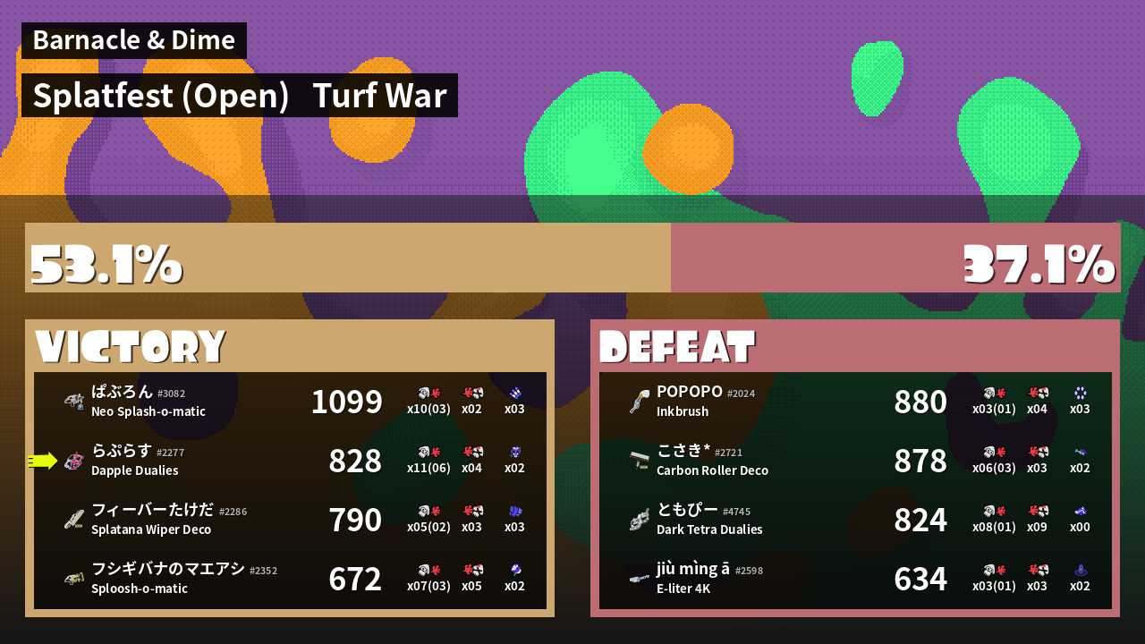 | Medals | #1 Overall Splatter #1 Home-Base Inker #1 Super Jump Spot | ||