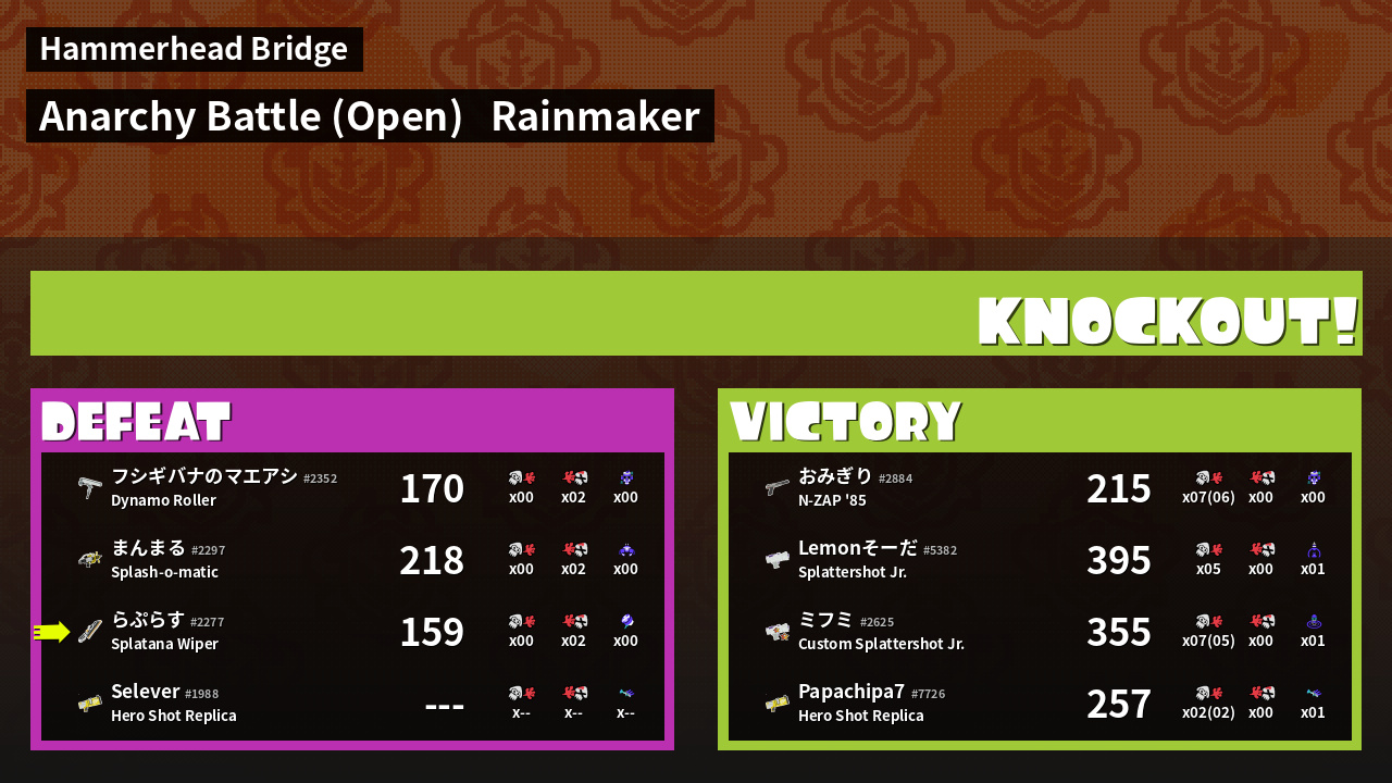Name | Weapon | Inked | ![]() |