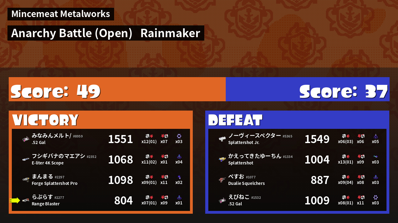 | Mode | Rainmaker - Anarchy Battle (Open) | ||