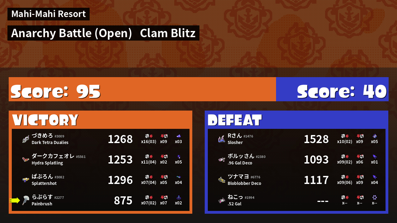 | Mode | Clam Blitz - Anarchy Battle (Open) | ||
